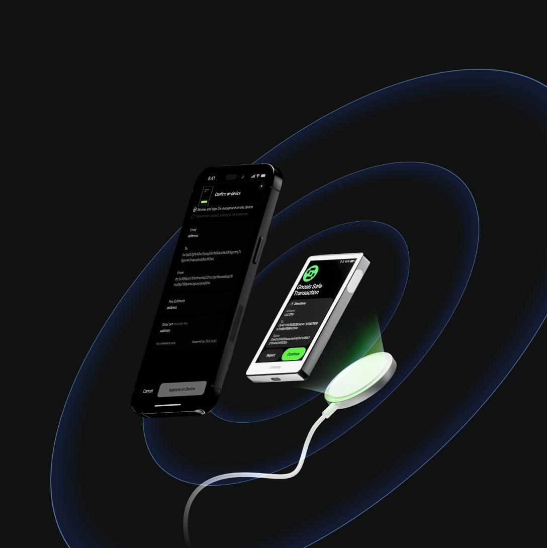 QR-code signing keeps your private keys completely offline. Qi wireless charging reduces reliance on wired connections and minimizes the attack surface.